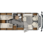 • Shranjevalni prostori: dvojno dno, v katerem so nameščeni sistemi, je zaščiteno, izolirano in ogrevano. To je zasluga moči in široke pokritosti ogrevalnega sistema, ki ga upravlja sodobna programabilna digitalna plošča in je na voljo tudi na dizel, elektrika ali prefinjen konvekcijski sistem s toplotnimi izmenjevalniki med vožnjo. Od kabine do garaže, od dnevne sobe do kopalnice, vse je popolnoma ogrevano, tudi rezervoarji za vodo. Nahajajo se blizu zadnje osi za popolno ravnovesje obremenitve, delno so vstavljeni v dvojno dno in delno v ogrevano snemljivo lupino, izolirano s poliuretanom.