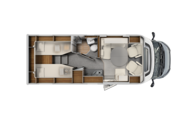 • Shranjevalni prostori: dvojno dno, v katerem so nameščeni sistemi, je zaščiteno, izolirano in ogrevano. To je zasluga moči in široke pokritosti ogrevalnega sistema, ki ga upravlja sodobna programabilna digitalna plošča in je na voljo tudi na dizel, elektrika ali prefinjen konvekcijski sistem s toplotnimi izmenjevalniki med vožnjo. Od kabine do garaže, od dnevne sobe do kopalnice, vse je popolnoma ogrevano, tudi rezervoarji za vodo. Nahajajo se blizu zadnje osi za popolno ravnovesje obremenitve, delno so vstavljeni v dvojno dno in delno v ogrevano snemljivo lupino, izolirano s poliuretanom.