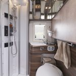 - Velika ločena prha, udobna in dostopna kot vaša prha doma. Z umivalnikom, ki ga je mogoče obrniti in ustvariti tuš kabino. Ta rešitev je standardna pri modelih Ecovip 2009/2109, 3010, 3019/3119.