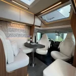 • Enakomerna temperatura po celotnem bivalnem prostoru zahvaljujoč neprekinjenemu kroženju zraka po celotnem vozilu, ki ga zagotavlja prezračevalne odprtine proti kondenzaciji v stenskih omaricah in stene proti kondenzaciji v dnevni sobi in spalnicah. Pri vozilih s konvekcijskim ogrevanjem (opcijsko ALDE) se toplota posredno razprši vzdolž sten