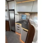 • Shranjevalni prostori: dvojno dno, v katerem so nameščeni sistemi, je zaščiteno, izolirano in ogrevano. To je zasluga moči in široke pokritosti ogrevalnega sistema, ki ga upravlja sodobna programabilna digitalna plošča in je na voljo tudi na dizel, elektrika ali prefinjen konvekcijski sistem s toplotnimi izmenjevalniki med vožnjo. Od kabine do garaže, od dnevne sobe do kopalnice, vse je popolnoma ogrevano, tudi rezervoarji za vodo. Nahajajo se blizu zadnje osi za popolno ravnovesje obremenitve, delno so vstavljeni v dvojno dno in delno v ogrevano snemljivo lupino, izolirano s poliuretanom.