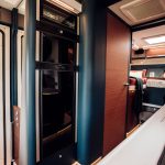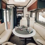 Luksuzni avtodom ponuja vse, kar potrebujete za popolno udobje, svobodo in brezskrbno raziskovanje sveta. Že ob vstopu vas pričaka eleganten in prostoren dnevni prostor z moderno kuhinjo, opremljeno s Premium hladilnikom, kakovostnim štedilnikom ter obilo odlagalnega prostora. Prostorna jedilna miza vabi k sproščenemu druženju in uživanju obrokov, medtem ko velika panoramska okna zagotavljajo obilico naravne svetlobe in čudovit razgled na okolico.