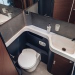 V kopalnici se nahajata ločena tuš kabina in WC, kar omogoča zasebnost in udobje na ravni hotelske sobe. Vrhunski materiali in sodobna zasnova poskrbijo, da je tudi osebna higiena na poti prijetna in brezkompromisna.