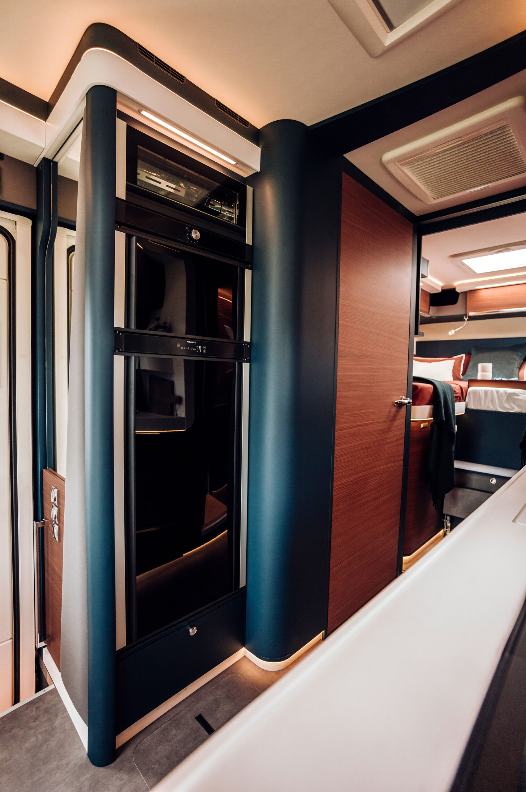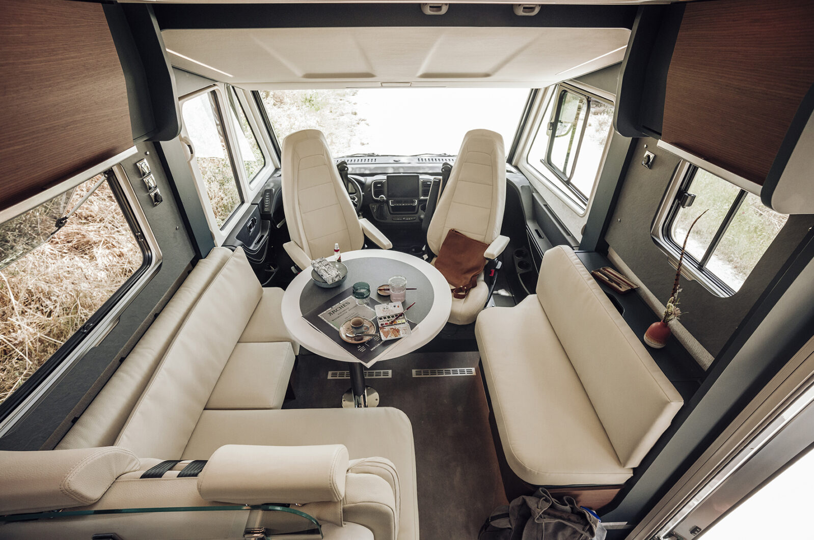 Luksuzni avtodom ponuja vse, kar potrebujete za popolno udobje, svobodo in brezskrbno raziskovanje sveta. Že ob vstopu vas pričaka eleganten in prostoren dnevni prostor z moderno kuhinjo, opremljeno s Premium hladilnikom, kakovostnim štedilnikom ter obilo odlagalnega prostora. Prostorna jedilna miza vabi k sproščenemu druženju in uživanju obrokov, medtem ko velika panoramska okna zagotavljajo obilico naravne svetlobe in čudovit razgled na okolico.