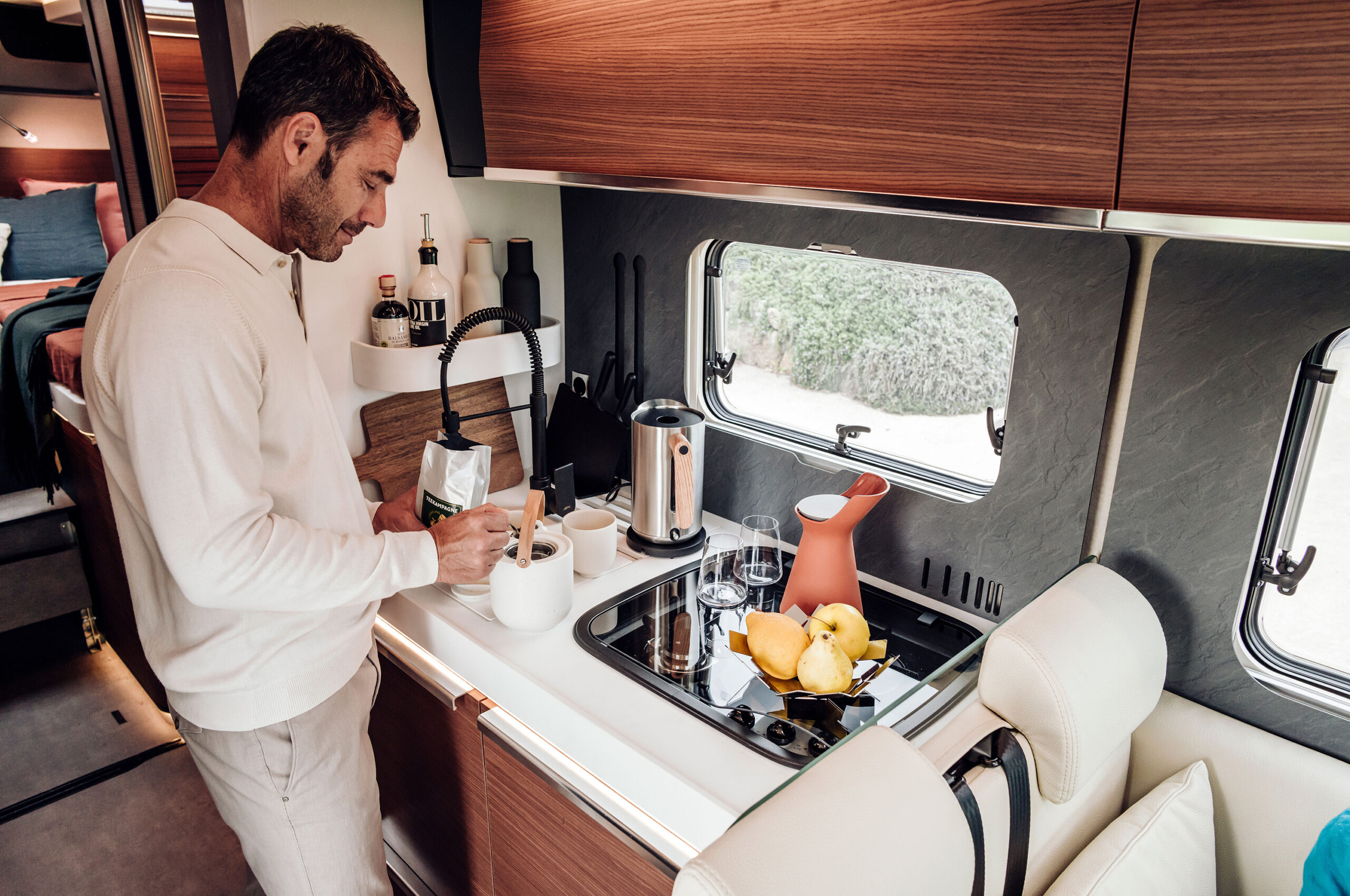 - Tri možnosti kuhinje: standardna (velik hladilnik + plinska pečica); Grand Chef (velik hladilnik in velika pečica z žarom in morebiti tudi mikrovalovno pečico); z velikim hladilnikom, plinsko pečico in pomivalnim strojem