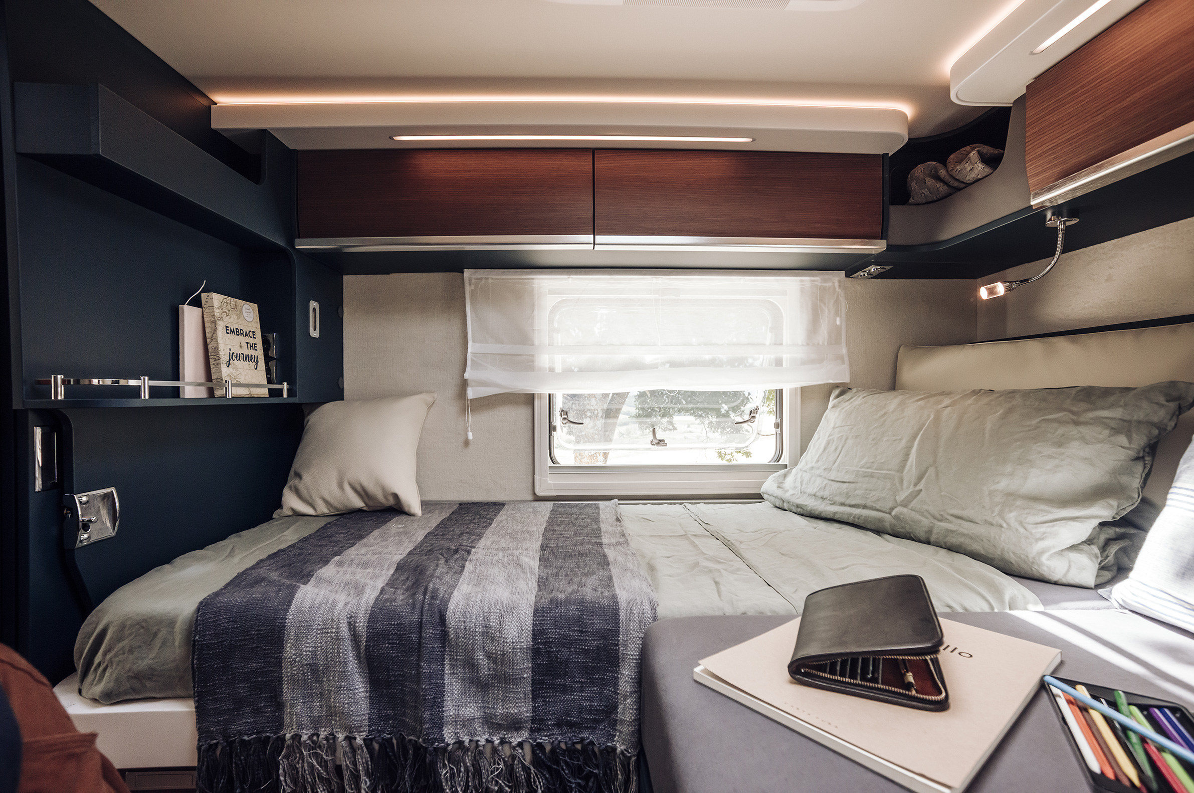Za miren in kakovosten počitek skrbijo udobni, ločeni spalni prostori, ki navdušijo tudi najbolj zahtevne popotnike. Vgrajeni sistemi prezračevanja in velika okna omogočajo prijetno klimo skozi celoten dan.