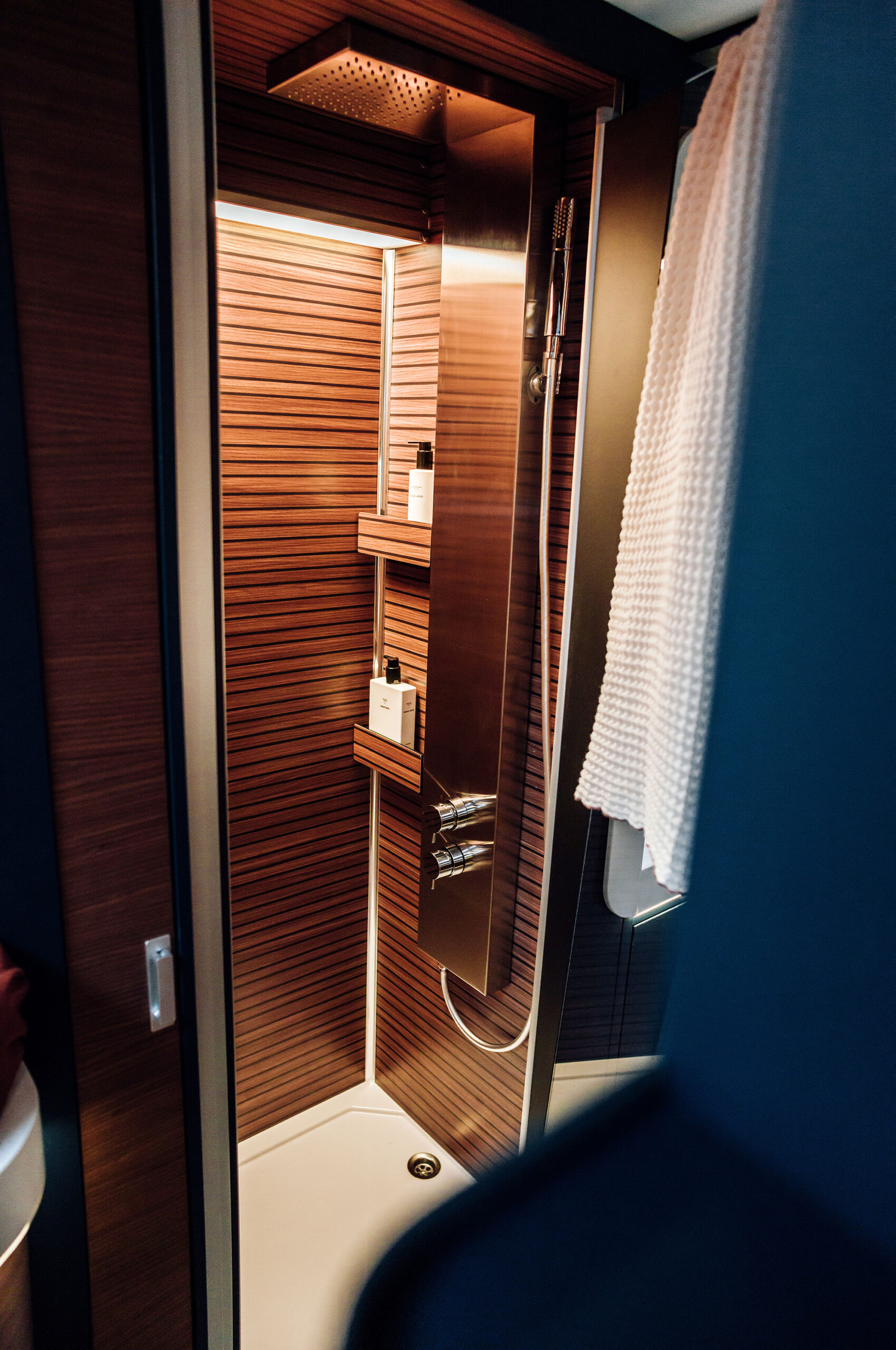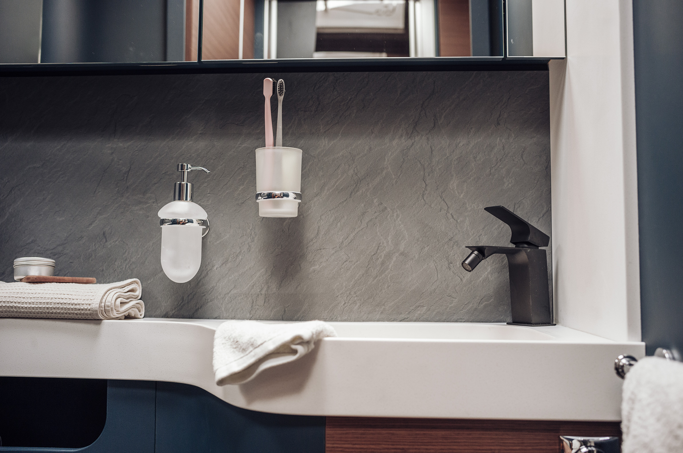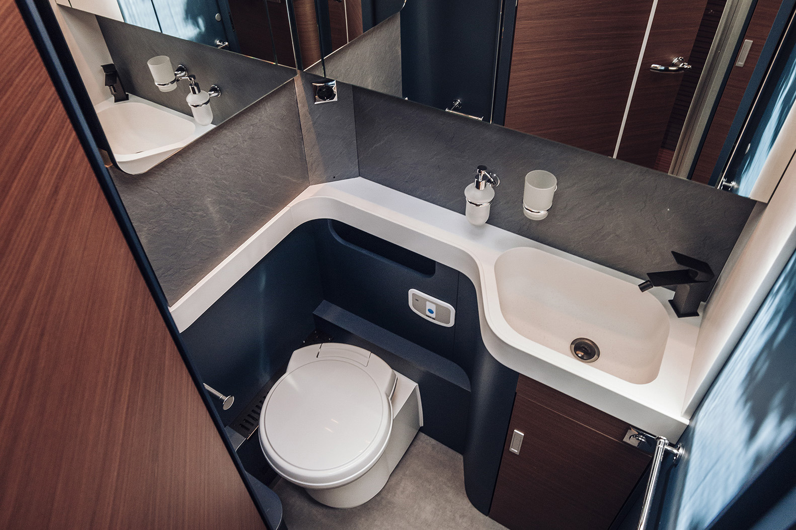 V kopalnici se nahajata ločena tuš kabina in WC, kar omogoča zasebnost in udobje na ravni hotelske sobe. Vrhunski materiali in sodobna zasnova poskrbijo, da je tudi osebna higiena na poti prijetna in brezkompromisna.
