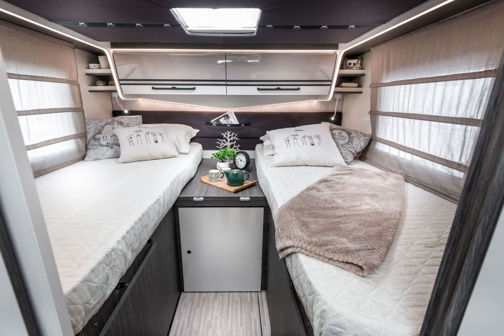 Za dodatno udobje bodo poskrbela tudi 16 palčna alu platišča asistenčni sistemi in multifunkcijski volan. V dnevnem prostoru navdušuje praktična kuhinja z tremi plinskimi gorilniki in 133 L avtomatskim hladilnikom Dometic, ki sam izbira vir energije. Prostorna jedilna miza je dovolj prostorna tudi za 5 ljudi. V zadnjem delu se nahaja veliki spalni prostori z vzmetnico iz spominske pene ter protialergijsko prevleko. Tu so tudi velika okna opremljena z senčili in mrežico prodi komarjem. V kopalnici sta wc in tuš ločena.